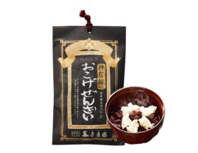JINZAIMOCHI OKOGE ZENZAI « HARA KOTOBUKIEN » 149G神在餅 おこげぜんざいSoupe de haricots rouges sucrés surchoix avec biscuits de riz, à consommer chaude l'hiver ou fraîche l'étéCHF 7,90 -