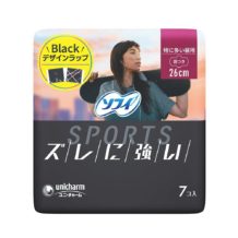 SOFI SPORTS HIRUYO 26CM HANETSUKI « UNICHARM » 7PソフィSPORTS260羽つき7枚Serviettes hygiéniques de jour, flux abondant. Convient pour le sport, longueur 26cm AVEC ailettes, emballées individuellementCHF 4,80 -
