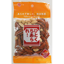 Kleine Reiskekse in Form eines Kakikerns (Halbmond) mit Sojasauce und leicht pikant mit Erdnüssen