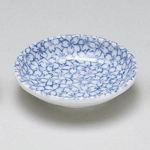 Kleiner runder Porzellanteller mit blauem Blumenmuster auf weißem Grund