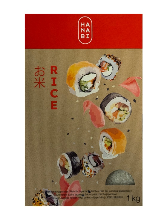 Weißer Rundkornreis Japonica, angebaut in Italien, geeignet für die Zubereitung von Sushi und japanischer Küche.