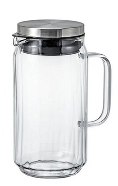 Karaffe aus geriffeltem Glas mit Ausguss, Deckel aus Edelstahl mit schwarzem Plastikfilter, 179x134x88mm