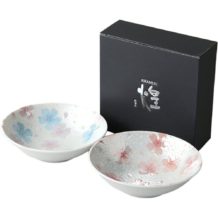 KIRAMEKI HIRABACHI PAIR 2P 16.5X5CM煌 平鉢ペアSet bestehend aus 2 weißen runden Schalen aus Porzellan mit Iris-Effekt und Kirschblütenmotiv in Rosa und BlauCHF 26,00Ausverkauf