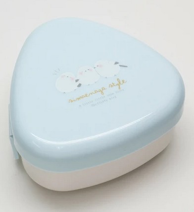 Boîte bento-moule bleue claire motif Mésange à longue queue pour 1 grand triangle de riz onigiri, ne convient pas au lave-vaisselle