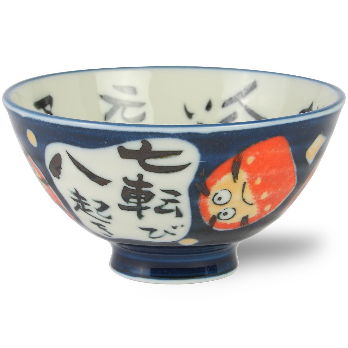 Bol à riz en porcelaine bleu marine motif daruma rouge