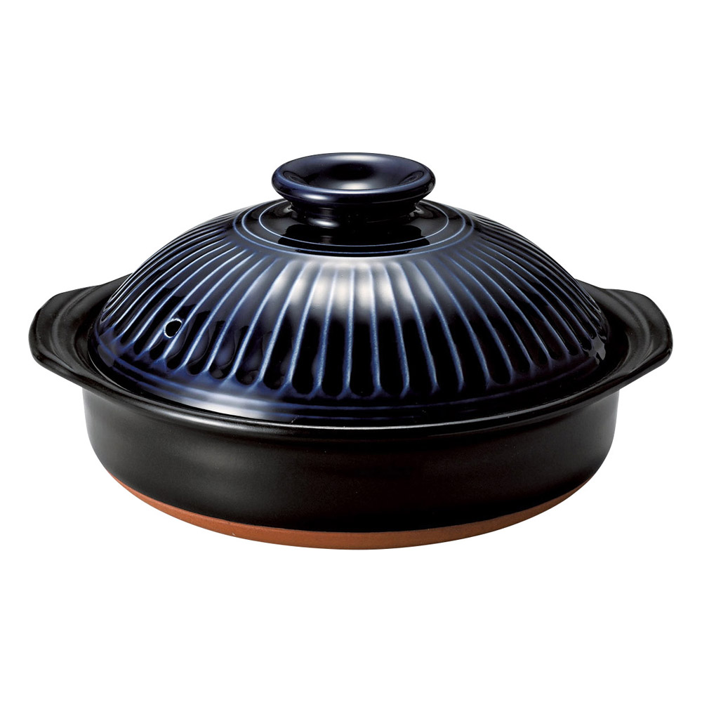 Marmite en terre cuite noire avec couvercle bleu pour fondue japonaise (nabe)