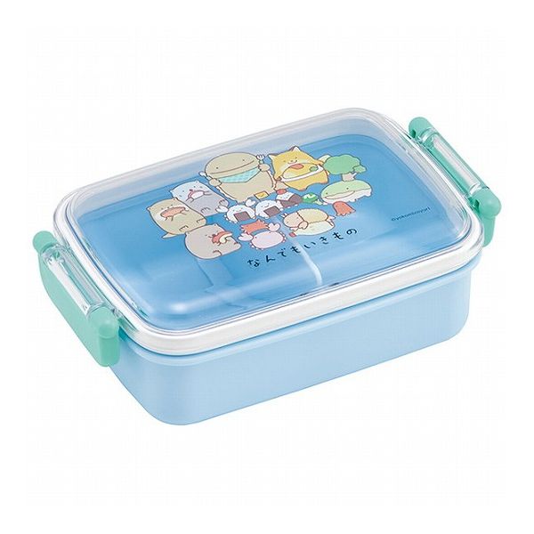 Boîte bento rectangle en plastique, 2 compartiments, motif Nandemo Ikimono, convient au micro-onde sauf le couvercle, et lave-vaisselle
