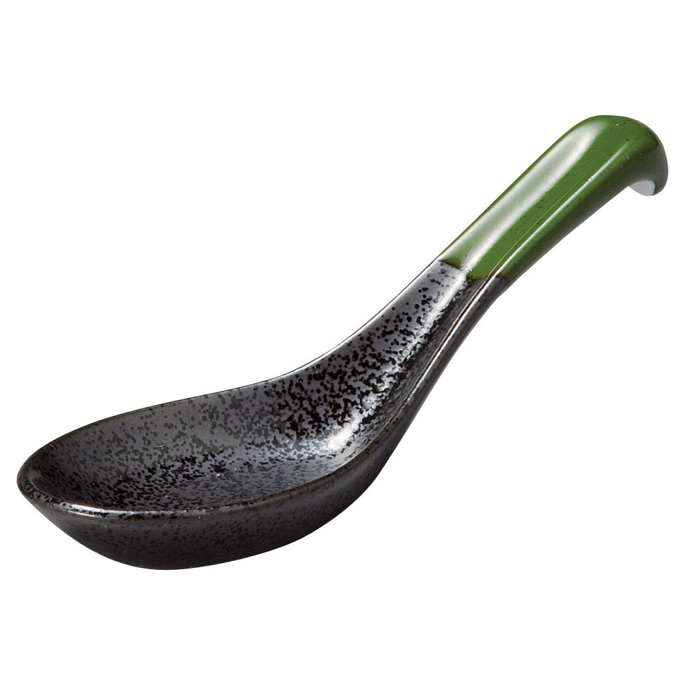 Cuillère en céramique noire avec rebord au manche pour s’accrocher au bol