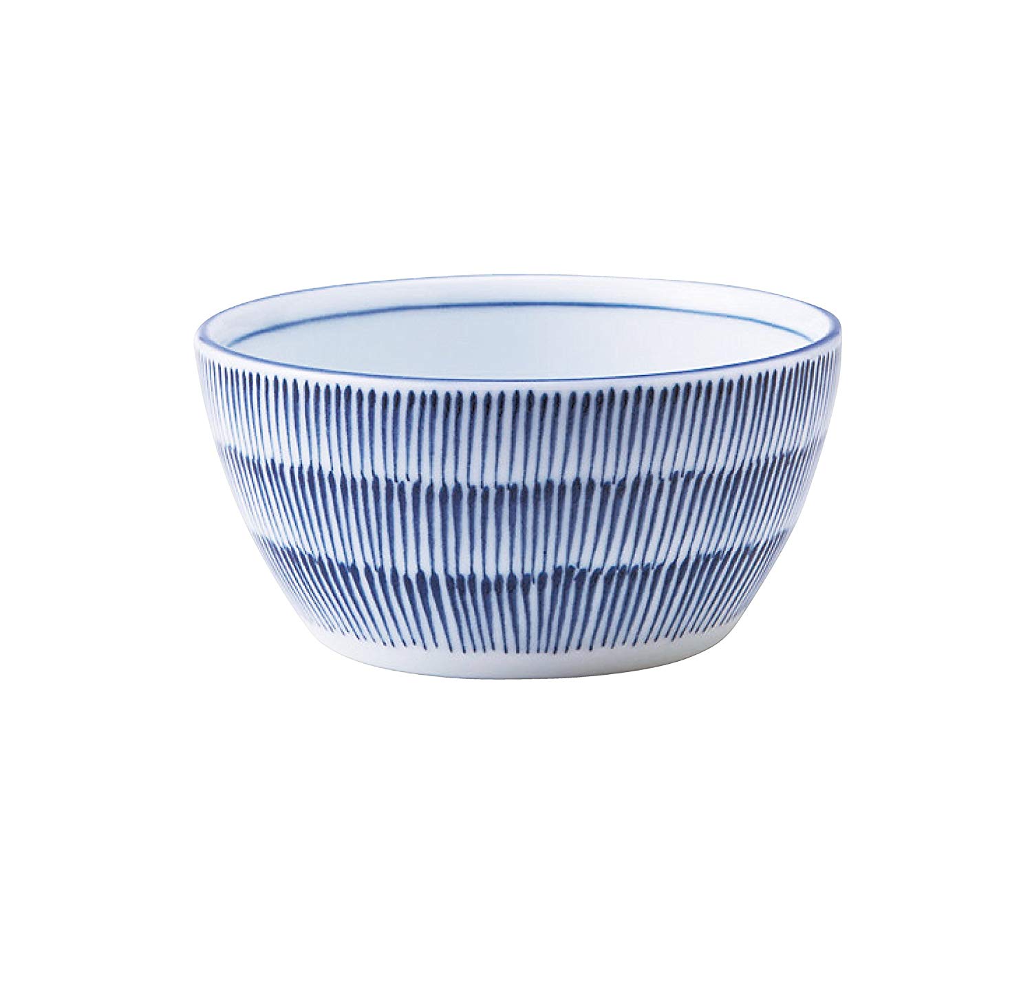 Bol en porcelaine blanc ligné bleu (couvercle transparent RENJI PACK MEDIUM vendu séparèment)