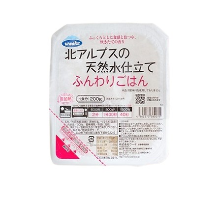 Riz japonais cuit avec de l’eau douce des Alpes japonaises du Nord, dans la préfecture de Toyama, à réchauffer