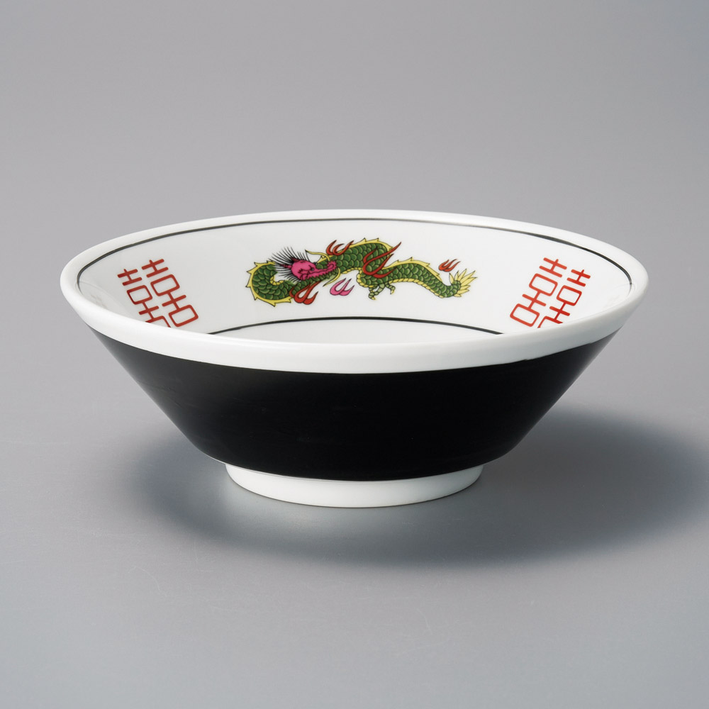 Bol en porcelaine noir et blanc avec motif dragon à l’intérieur, idéal pour les ramen