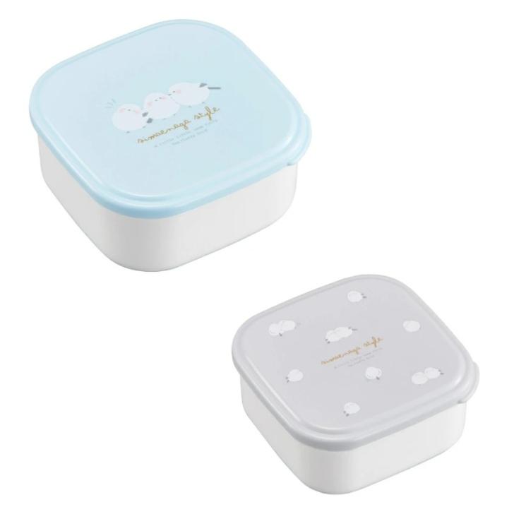 2 boîtes carrées blanches (couvercle bleu clair et gris clair) motif mésange à longue queue, ne convient pas au lave-vaisselle