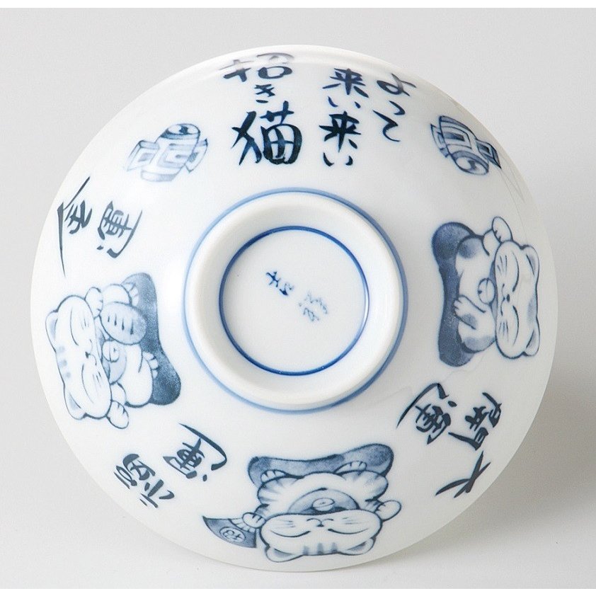 Bol en porcelaine blanc et bleu motif chat porte-bonheur