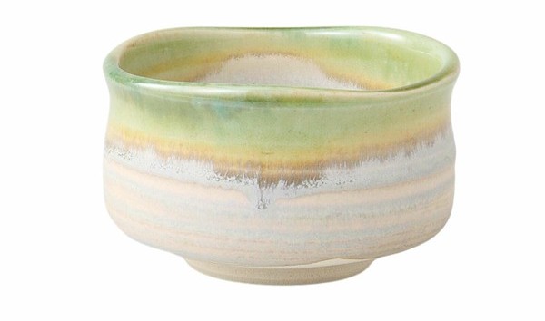 Tassse en céramique beige avec bordure pistache pour thé matcha