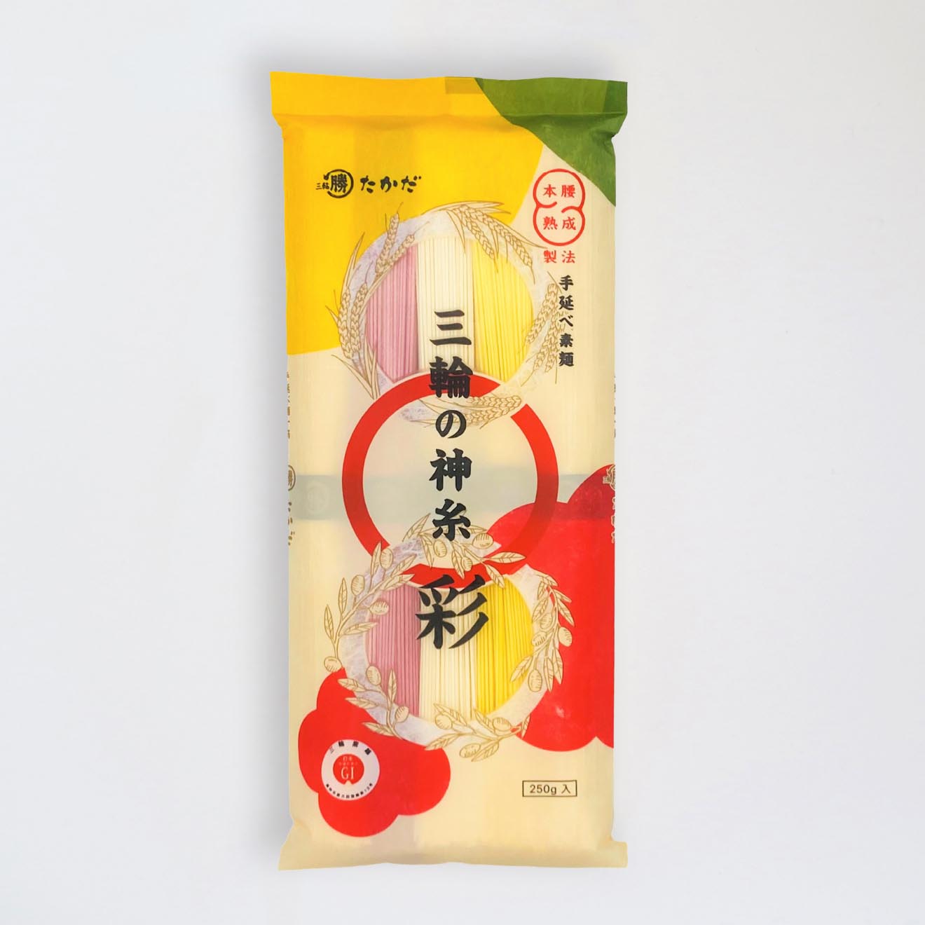 Nouilles sèches de blé très fines surchoix de Nara, 3 couleurs : blanc nature, rose prune, jaune yuzu, temps de cuisson 2 minutes