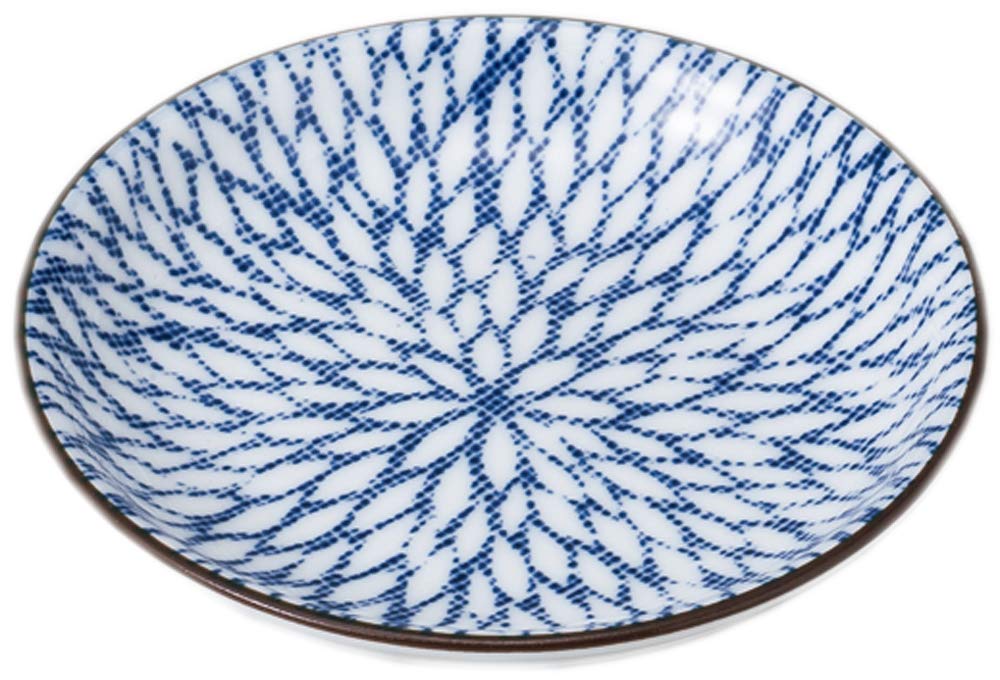 Petite assiette ronde en porcelaine blanche et bleue pour sauce motif chrysanthème