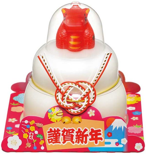 Pâte de riz ronde dans boîte spéciale nouvel-an avec figurine de dragon au-dessus (2024 année du dragon)