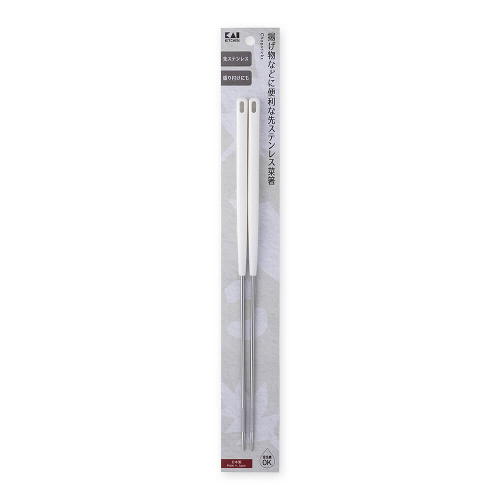 Baguettes fines pour cuisine manche blanc en plastique et bout en acier inoxydable