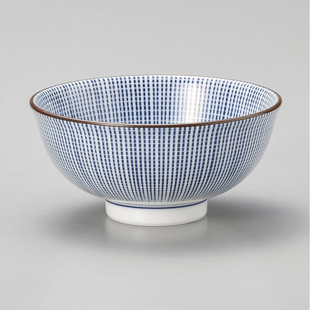 Bol à riz en porcelaine blanc avec motif points bleus (effet ligné)