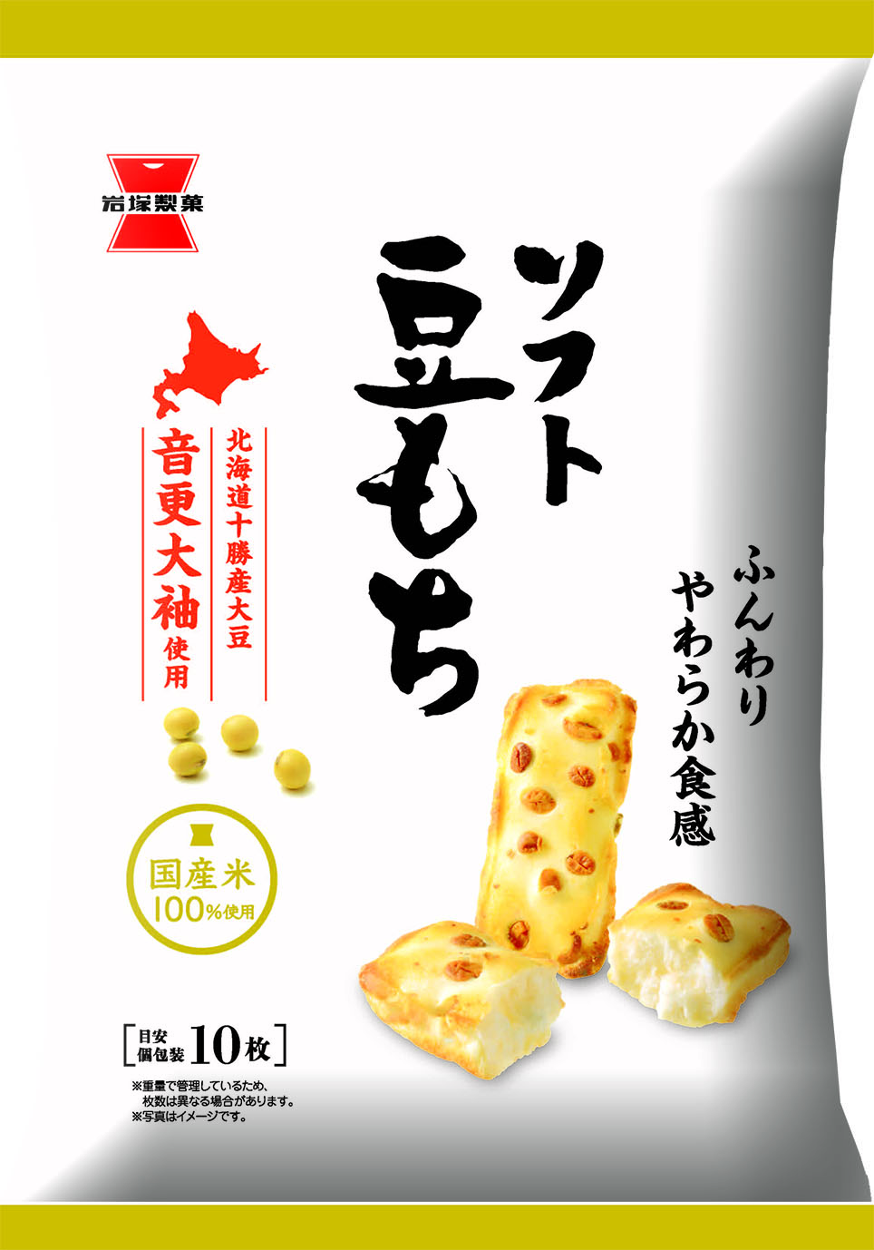 Biscuits de riz soufflés avec grains de soja, texture légère et aérienne, emballés individuellement