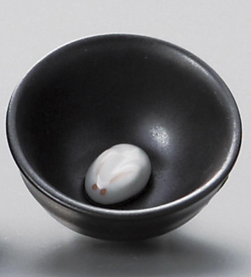 Verre à sake en céramique noir avec motif en relief de lapin à l’intérieur