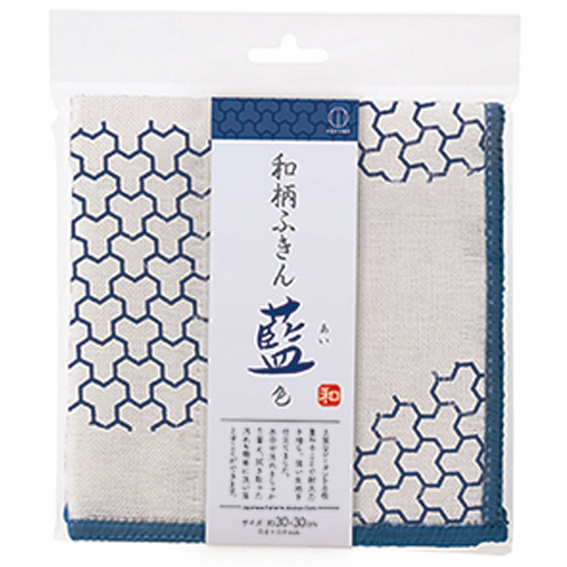和柄ふきん藍色 毘沙門亀甲×水玉