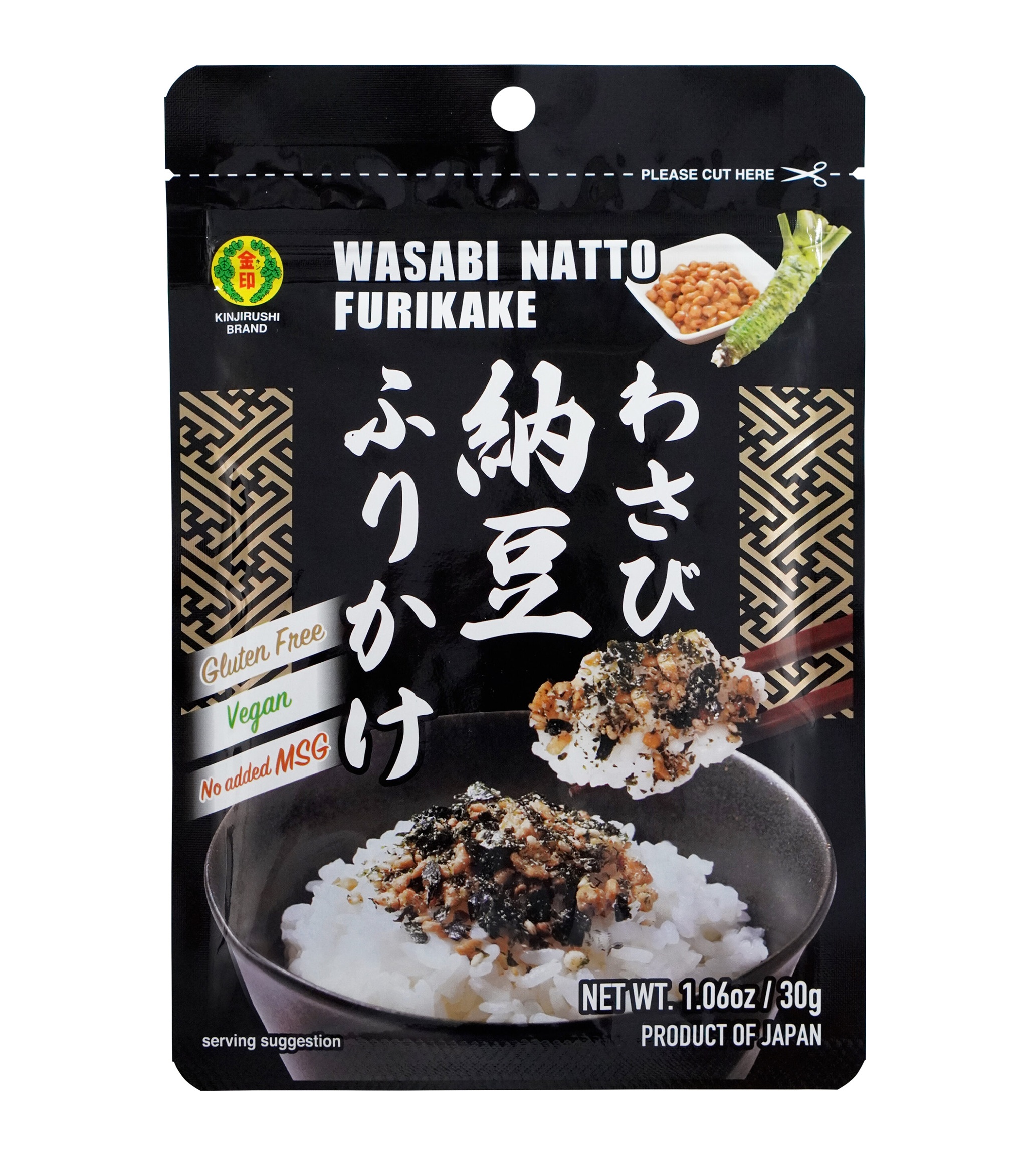 Assaisonnement au natto (soja fermenté) et wasabi, idéal pour le riz cuit, sushi, spaghettis et poisson